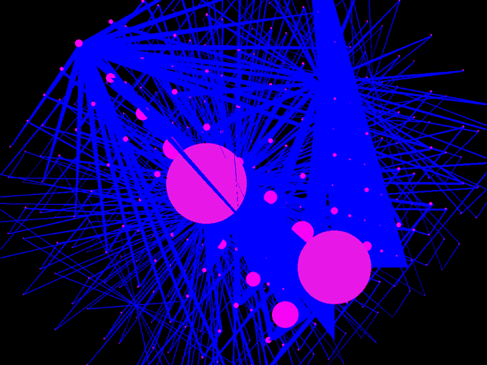 The colours were deliberately garish to highlight the three elements: vertices, the polygon edges joining the vertices, and colours indicating the distance of the (spherical) vertices.